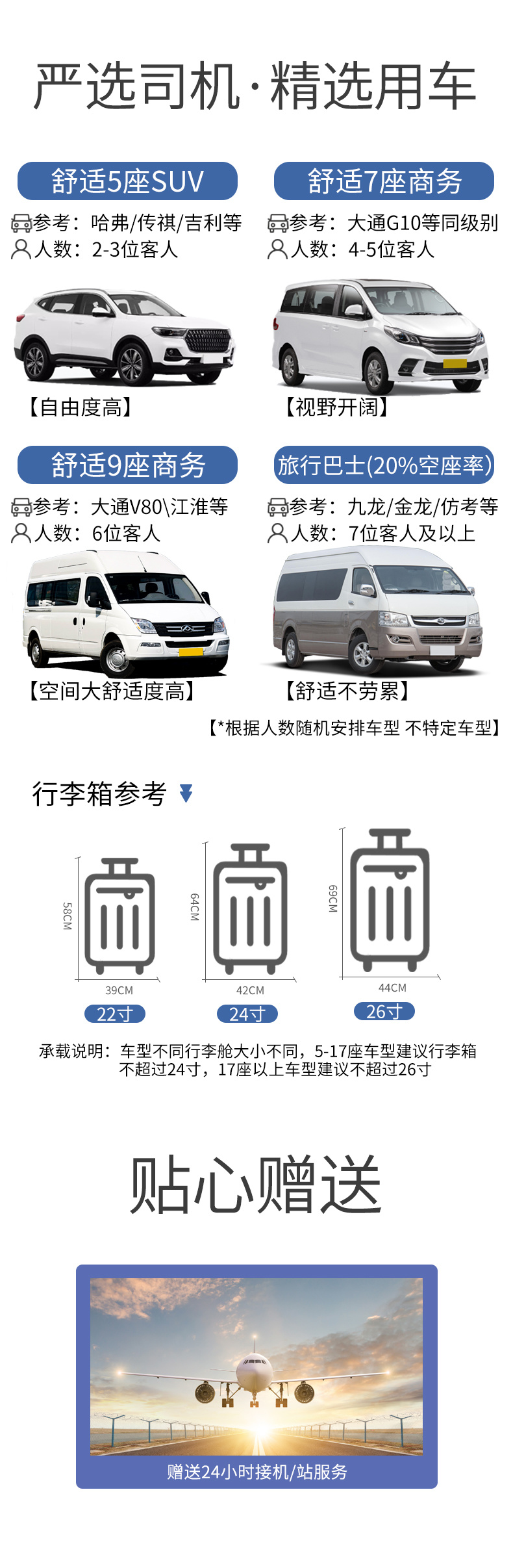 2、赠送24小时接飞机或火车服务(支持隔天送机)。