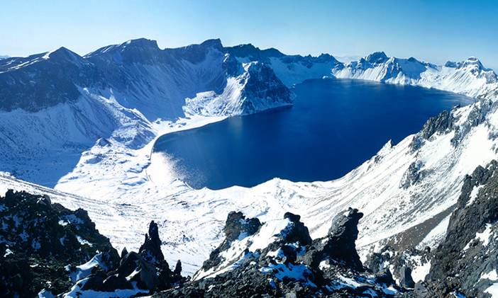 10:30 抵达倒站口,如果天气好大家可以换乘倒站车20分钟抵达天池主峰停车场,爬上5分钟到山顶,俯瞰美丽的天池,自由摄影30分钟。