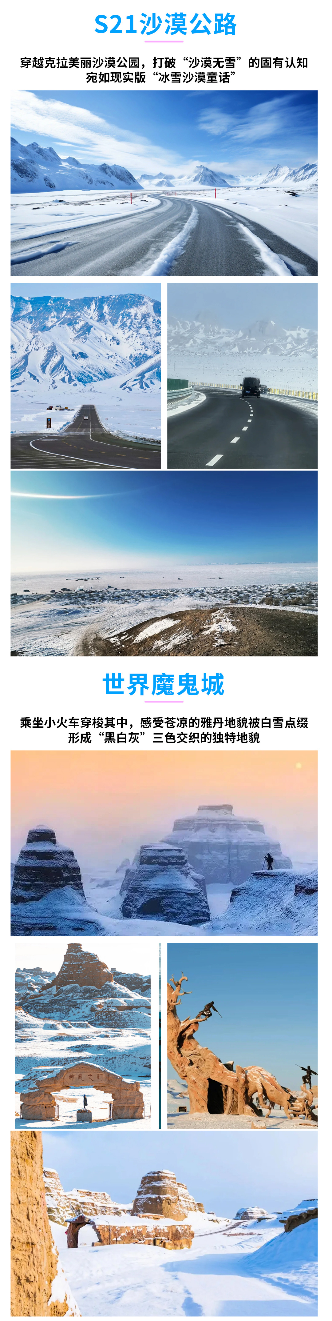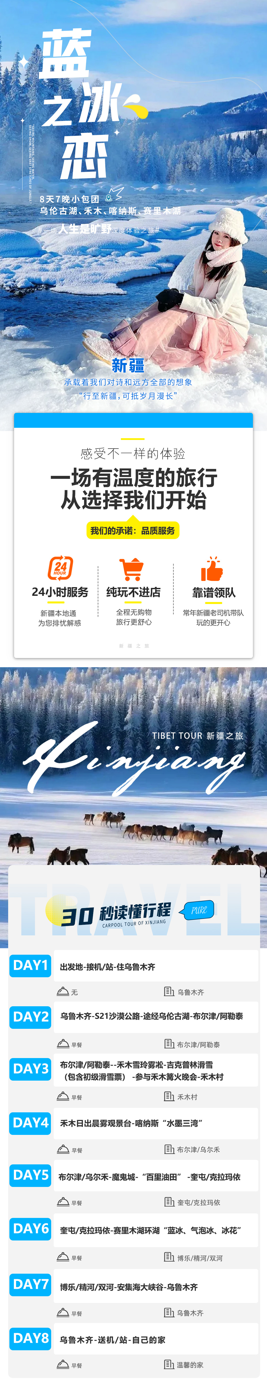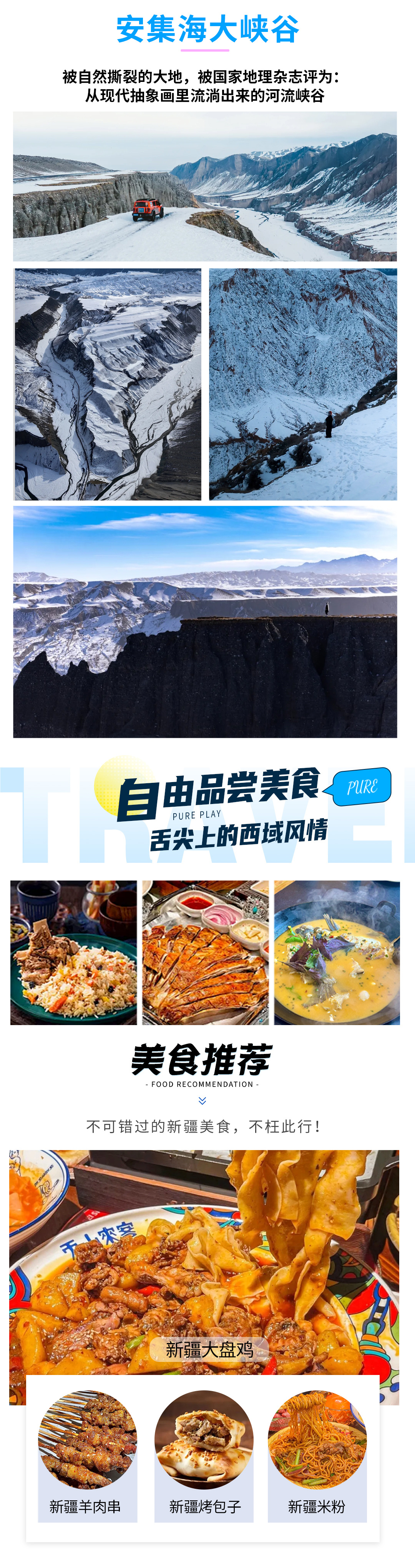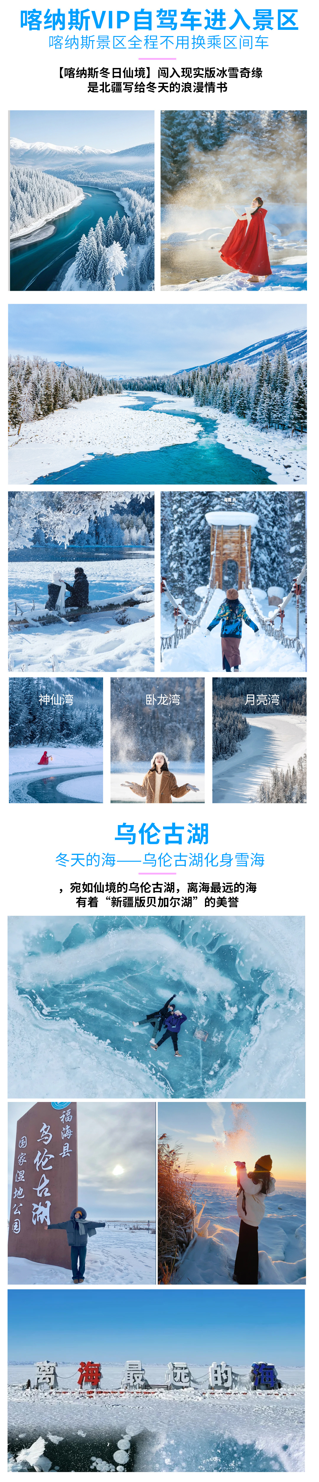 其他提示:因新疆各景点间路途遥远、冬季冰雪较滑,限制年龄内的孕妇不可报名。