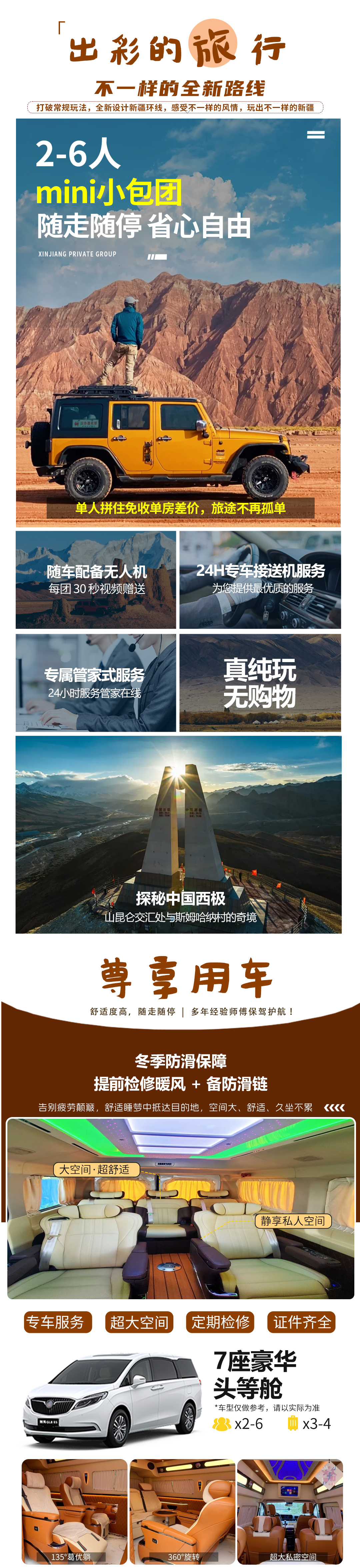 八.六人以上大宗客人报名:我们将根据实际容量分配至两个独立车辆(每个车为一个独立小团) ,每个车辆可能包含独立行程节奏或中途站点差异 ,强行要求平行行动会干扰其他团队的体验计划 ,甚至导致整体行程延误。