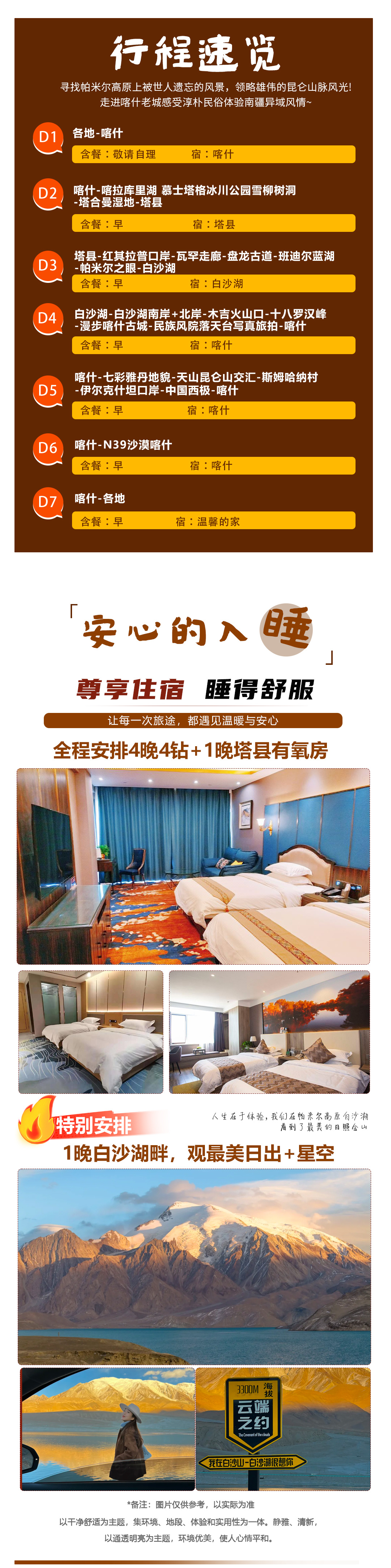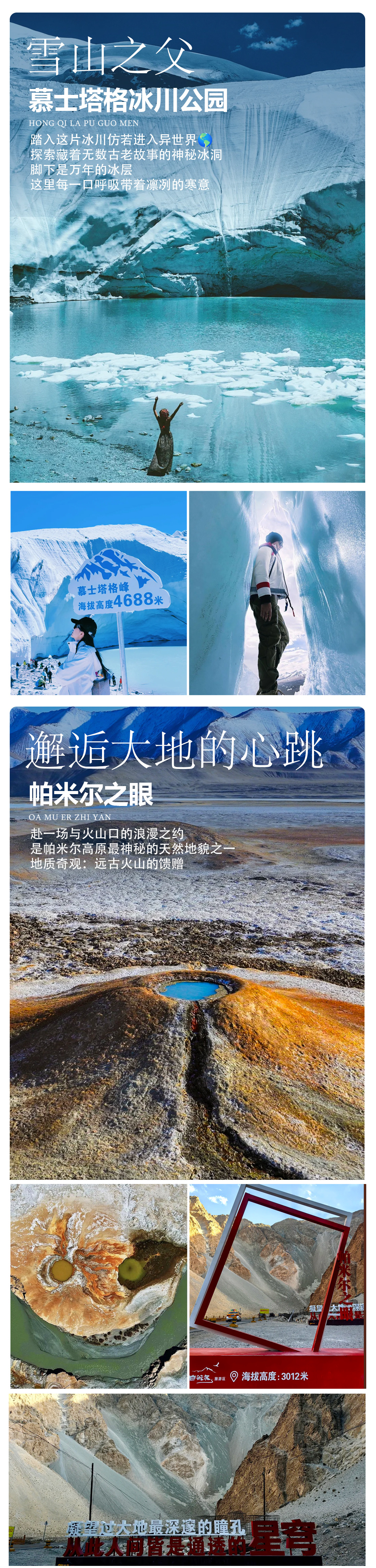 4.冬季塔县天气变化较大,如果天气原因慕士塔格冰川公园未开放,则取消此景点,退门票费用,无法增加景点请各位理解并且知晓;