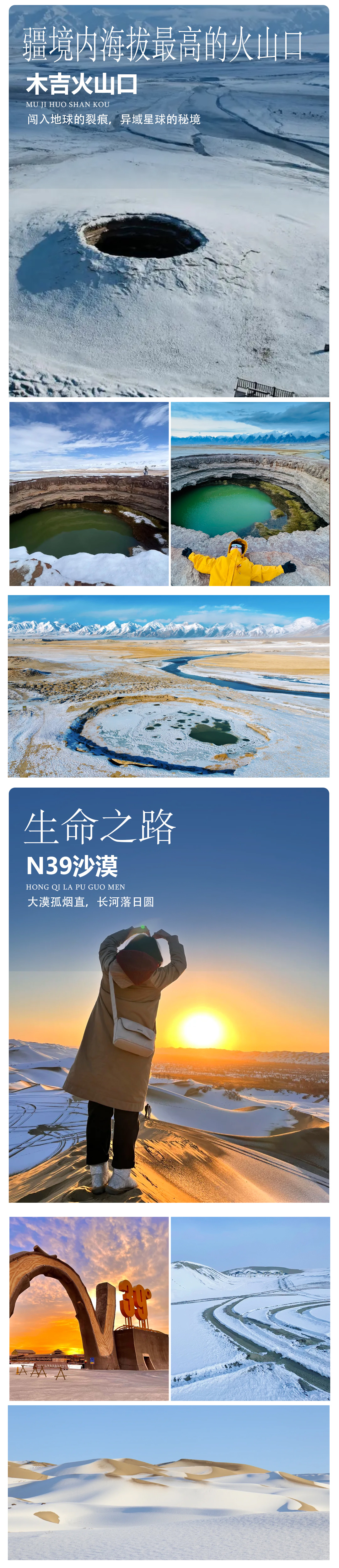 门票:行程中所列景点首道大门票及区间车 ,包含(喀拉库里湖门票、慕士塔格冰川公园门票+区间车、白沙湖门票、木吉火山口+区间车、西极门票、 N39 沙漠门票);