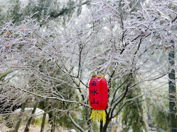 云冰山的冬天,有着南方罕见而迷人的冰雪景观,草木披上一层冰霜,伊然一派北国的风光。