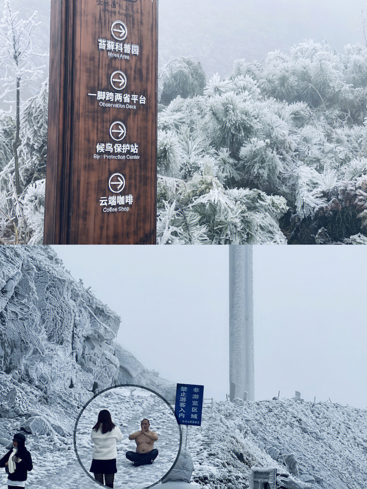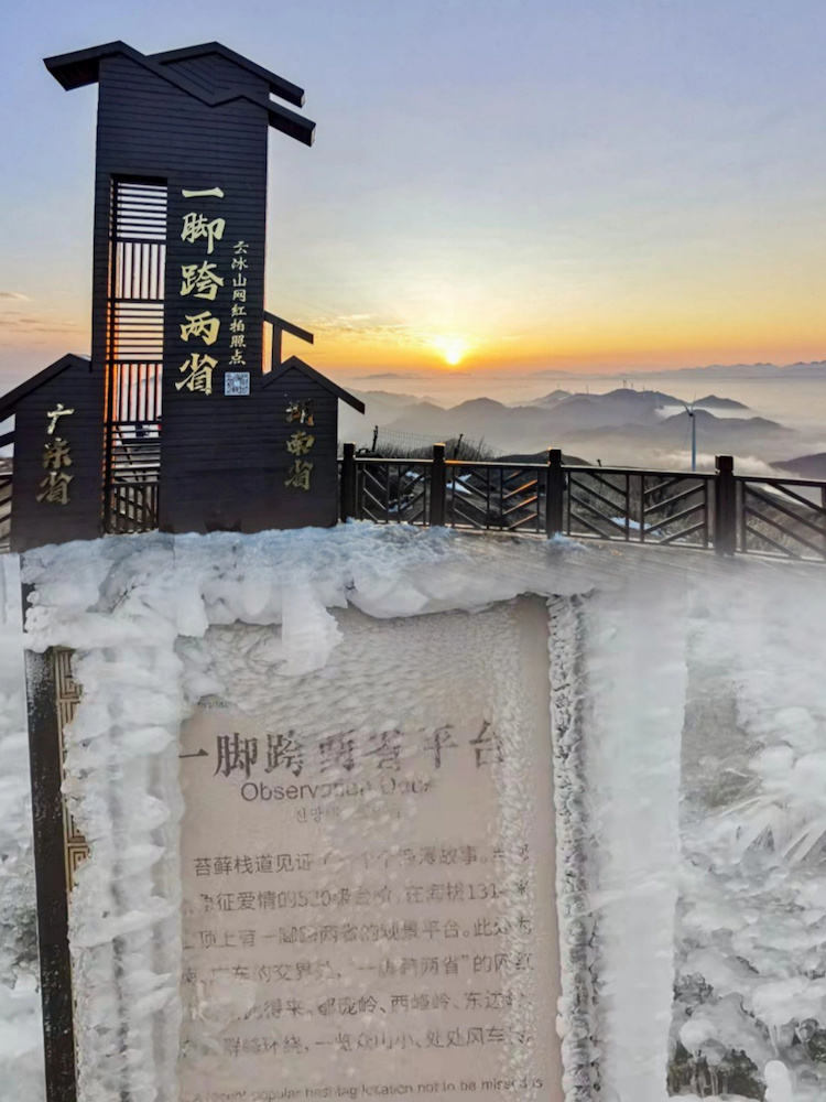 粤湘一脚踏两省有个景区,可赏雾凇冰挂观云海,被称“南方雪乡” ,它就是云冰山。