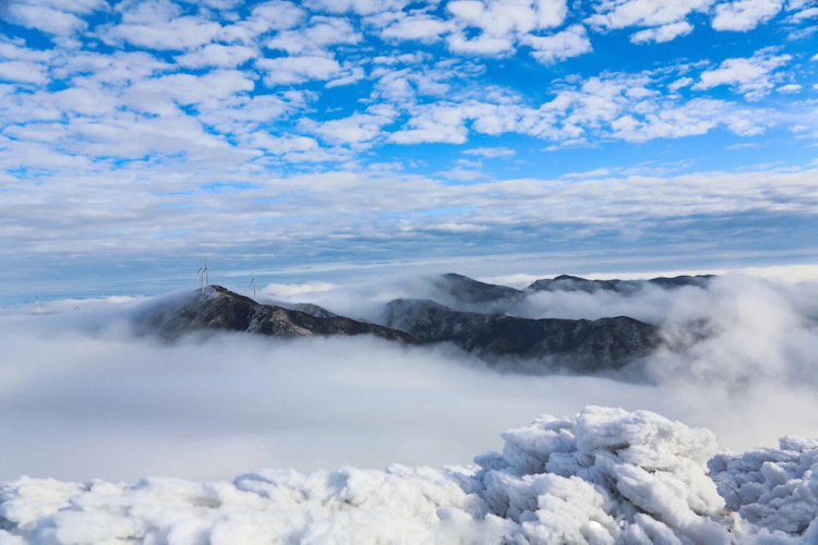 大家一看到“云冰山”这个名字,就能领悟到这个景点所包含的意思,那就是云海和冰挂。没错,云冰山景点最大的特色雾凇冰挂和无边无际的云海奇观。
