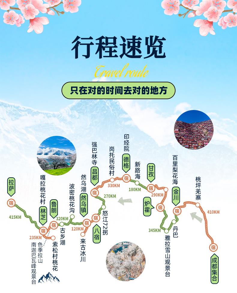 林芝桃花+金川梨花+色达+玉隆拉措+德格印经院+强巴林寺+然乌湖+来古冰川11日全景游