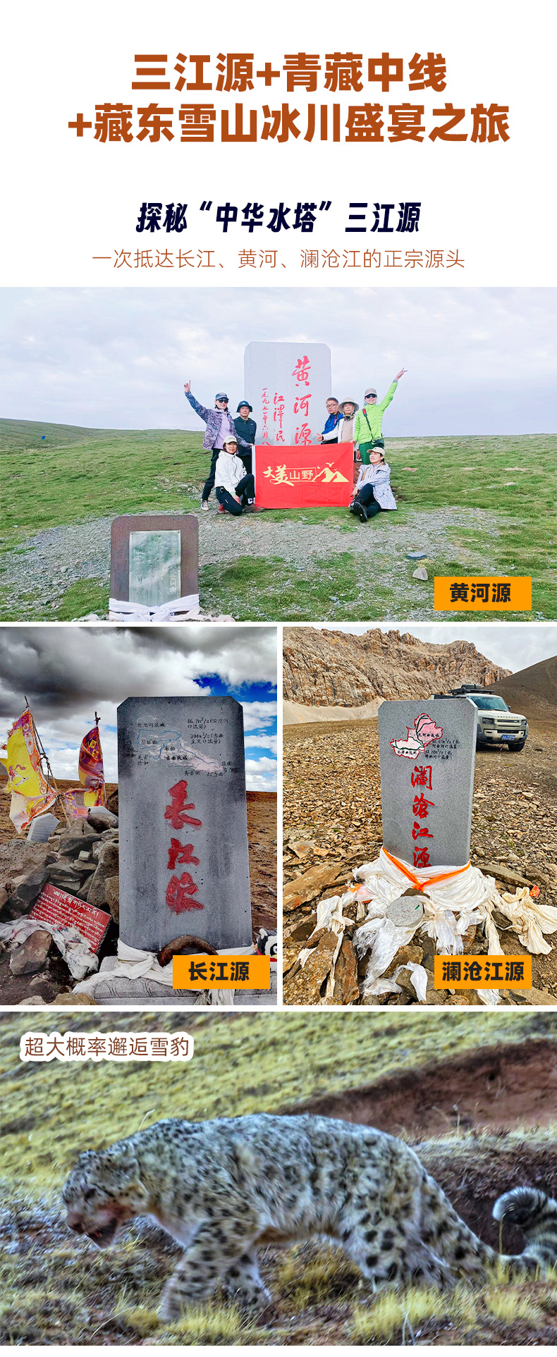 黄河、澜沧江、长江三江源源头穿越行程:16800元/人;后续藏东雪山冰川行程:12800元/人;两段一起参加价格:26800元/人。