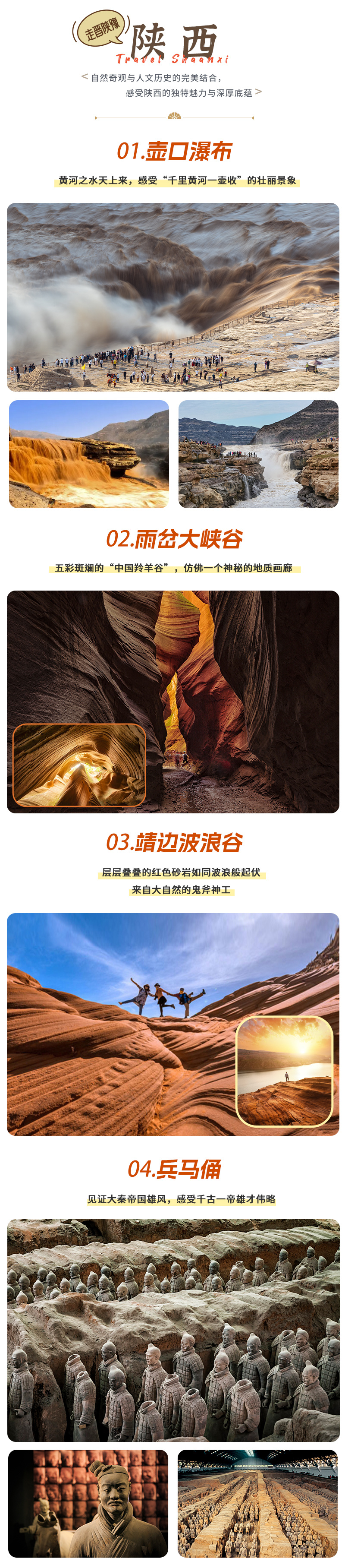 3、为了让大家多角度观赏黄河壶口的波澜壮阔,行程安排参观陕西壶口瀑布!