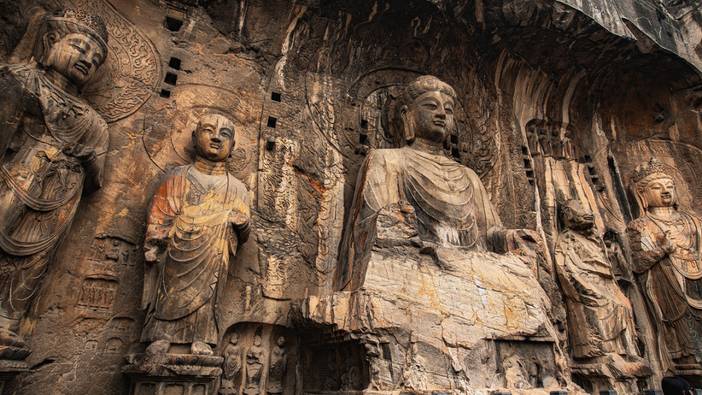 站在河对岸看石壁上密密麻麻的佛洞,内心升腾起巨大的震撼。作为我国各大石窟之首,它被联合国教科文组织评为“中国石刻艺术的最高峰”。不过可惜的是,偌大的龙门石窟几乎找不出几个完整的佛像。历史上几次著名的灭佛事件对它们造成了不可逆转的伤害,战争又让很多佛首流落海外,难回故土。站在这里,我们不禁要感受古代艺术美学,更要记住这份遗憾,希望国宝都能回家。