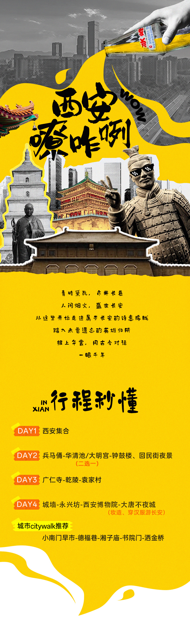 如需选择D4:城墙-永兴坊-西安博物院-大唐不夜城(妆造、穿汉服游长安)行程安排: