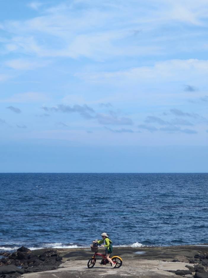 一早出发前往城山浦港,坐上渡轮十几分钟就能上牛岛了,自行车环岛骑行(骑行时间2个多小时就能环岛一圈),济州岛的自行车都是带助力的,所以骑起来非常轻松,一路走走停停。