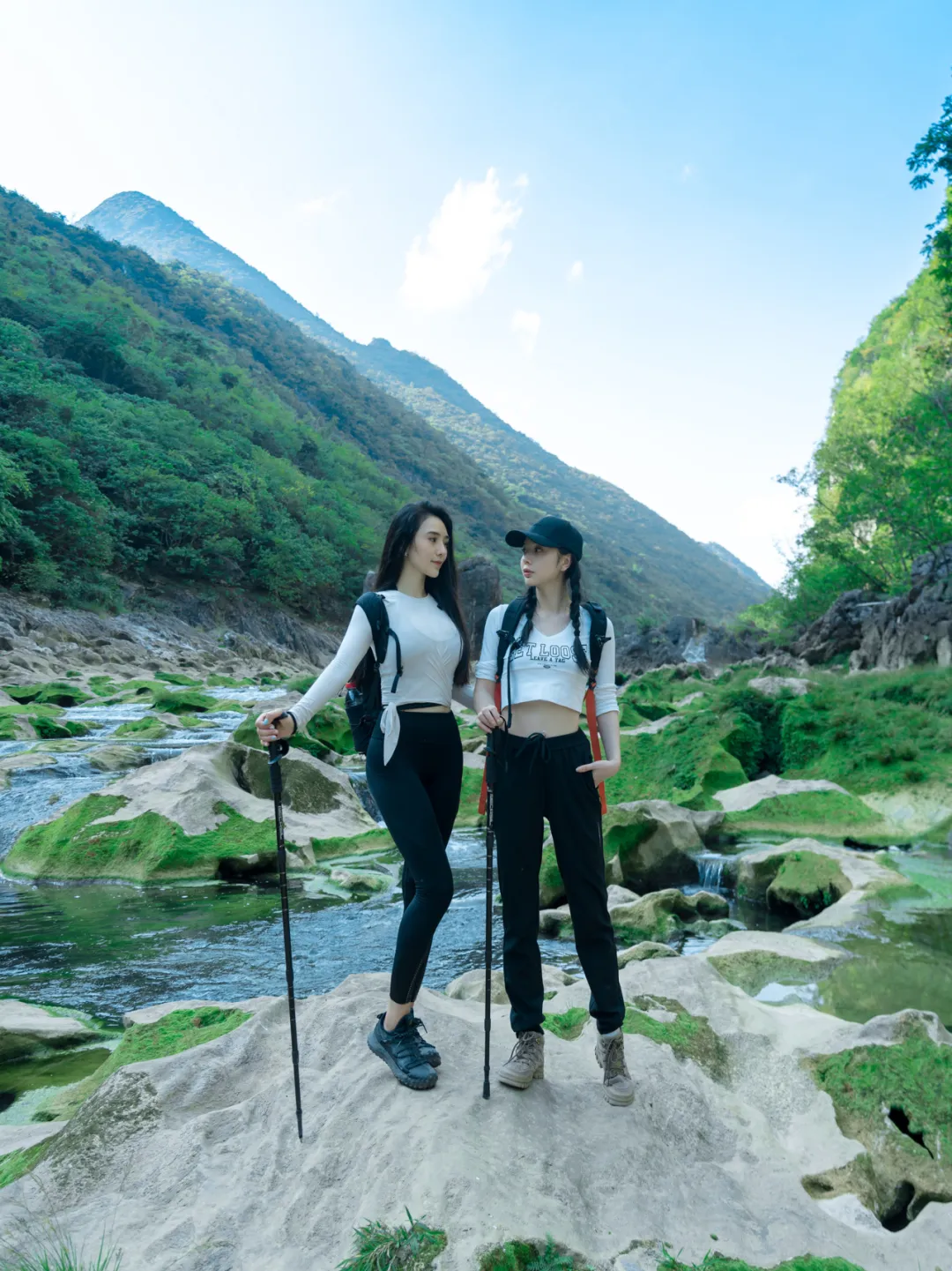 ①今天的徒步路程约8公里累计爬升约400米(下降约300米),瀑布溶洞峡谷风光为主,需要山路,有陡坡路段、雨季道路泥泞,需要穿防滑的鞋子和带备换衣服鞋子。
