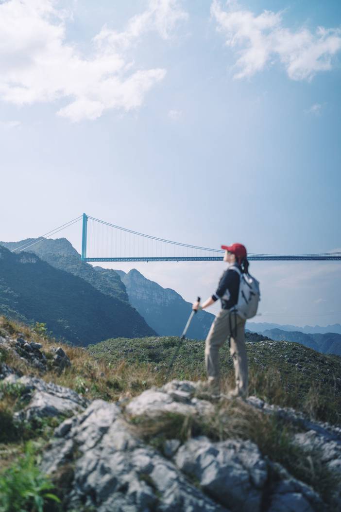 下午沿北盘江岸山脊徒步,与“横竖皆壮丽”的花江大桥合影,沉浸于喀斯特地貌的层次之美。傍晚乘车至贞丰县城入住,晚上可相约AA晚餐或自由寻味。