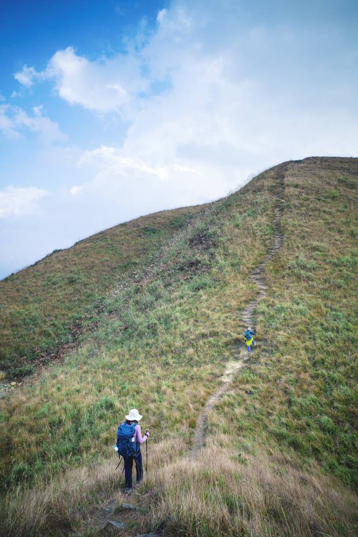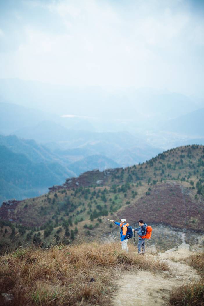 ① 今天的徒步路程约10公里(穿越路线),累计爬升约为500米(下降约600米),以喀斯特地形地貌草甸风光为主,大部分为山路,小段机耕路和丛林路段。