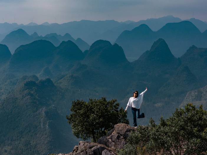 中午分享午餐后,徒步探访月亮洞、龙脊山,远眺纳灰古寨,沉浸于“中国最美峰林”的壮阔画卷。