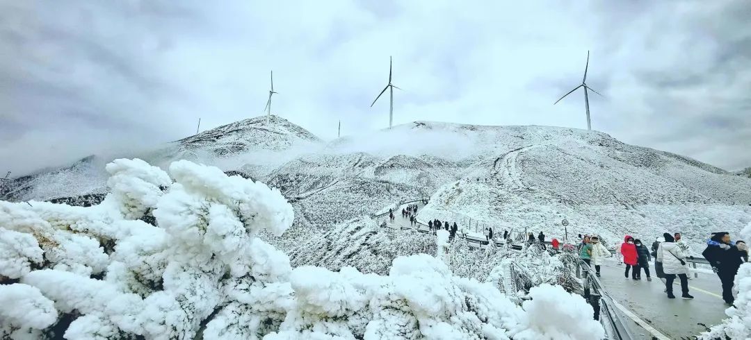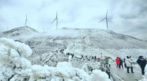 07:00 左右到达云冰山景区,购买门票乘坐景区接驳车上山(注意:如果遇上路面结冰则接驳车可能会停运,则只能徒步上山哦)游览云冰山网红打卡点壹脚跨两省标志,山顶观景台,民宿区烟雾缭绕,云冰铁索桥,云冰风车山等景点;(午餐自行解决)