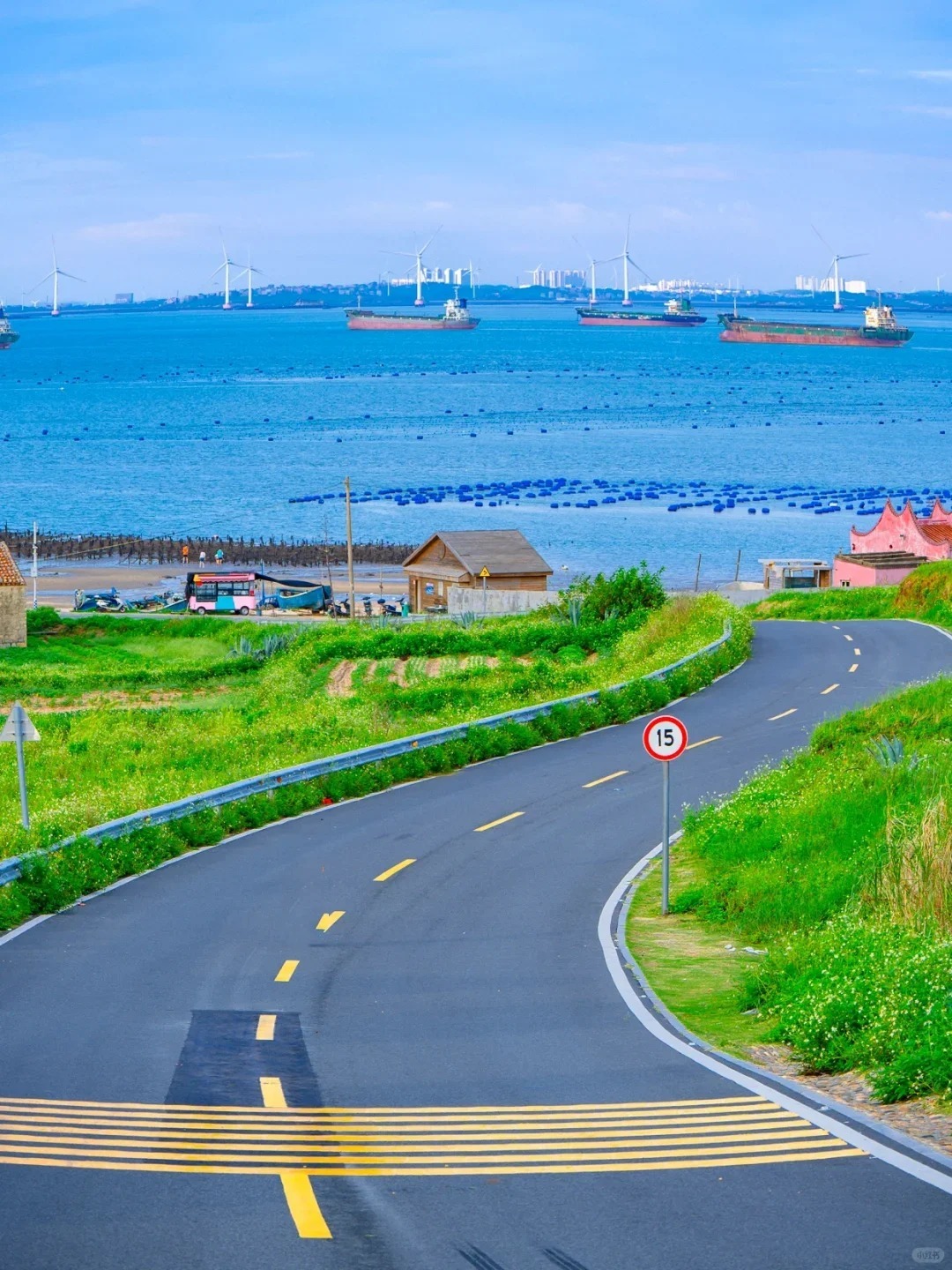 沿海环岛路:平潭环岛公路总长约200公里,其中的“君山后环线”被誉为平潭最美环岛路线。骑着小电驴飞驰在这条公路上,碧海、沙滩、风车、渔船、石厝、绿林一览无余,满满的小镰仓既视感,在斑马路上拍照YYDS!