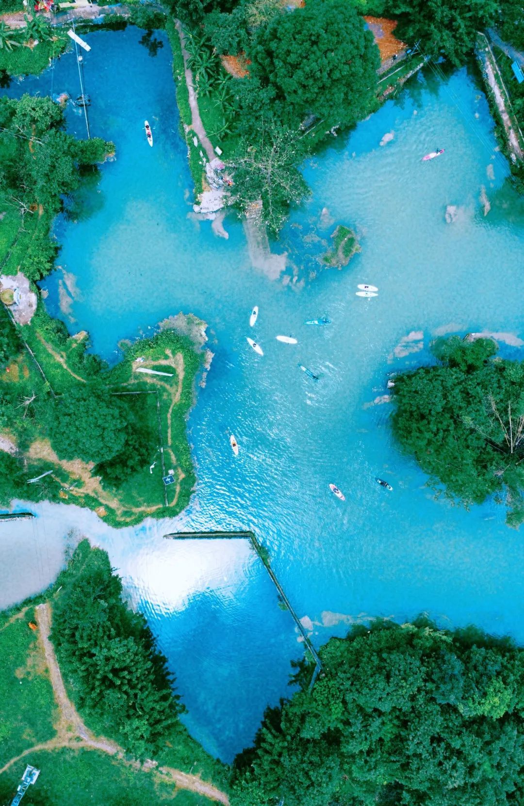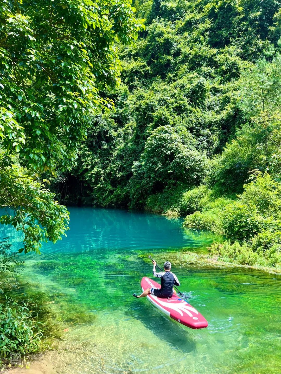 每到夏天就会有特别多的年轻人会来到这里玩浆板,清澈的水让浆板似漂浮在空中,特别神奇。