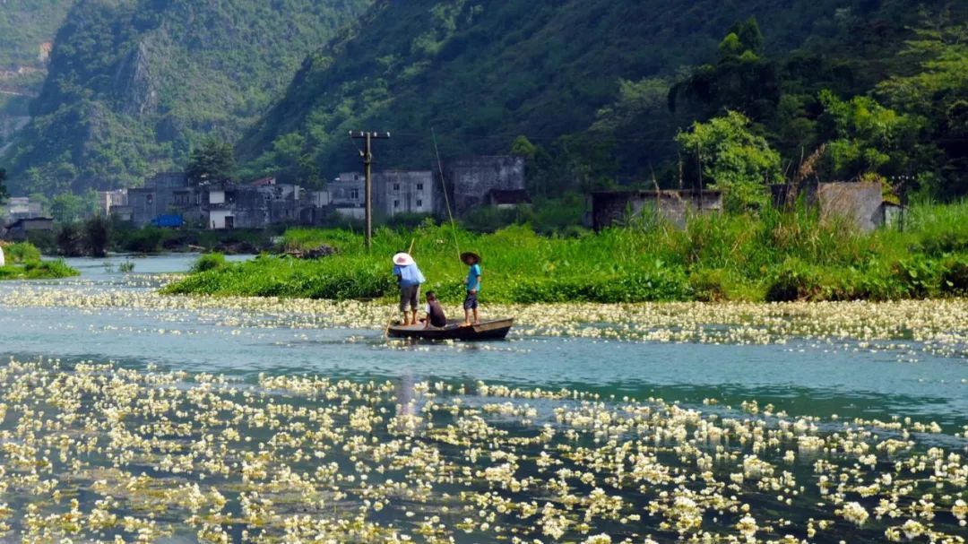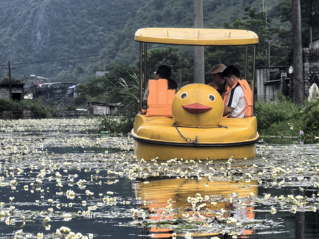 (4-10月开花期,小伙伴可以在这里戏水、租个浆板畅游在这条会开花的河之上,海菜花受天气影响,开放程度、数量、颜色等均以实物为准,旅行社不保证能看到海菜花,敬请谅解)