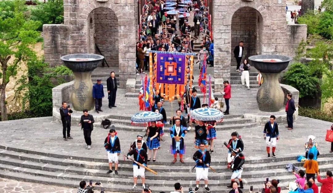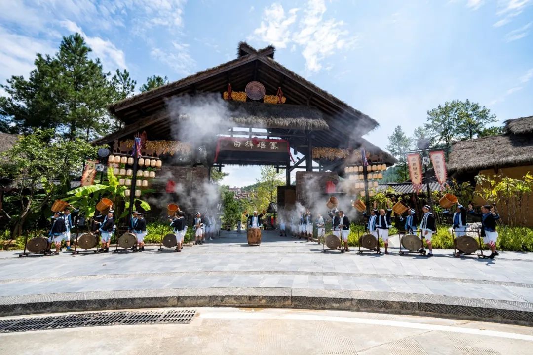 白裤瑶寨,整体呈现出既寨非寨、既城非城、既殿非殿、既宫非宫的建筑风格。将白裤瑶民居、非遗展示、白裤瑶民族风情融合一体,通过场景化打造、非遗展示、氛围演出全景化展现白裤瑶胞的生产生活以及生命状态。白裤瑶寨是一个没有围墙的活态实景博物馆,进入白裤瑶寨让您沉浸式体验白裤瑶原始、古朴、神秘的生产生活场景和浓郁的白裤瑶民族风
