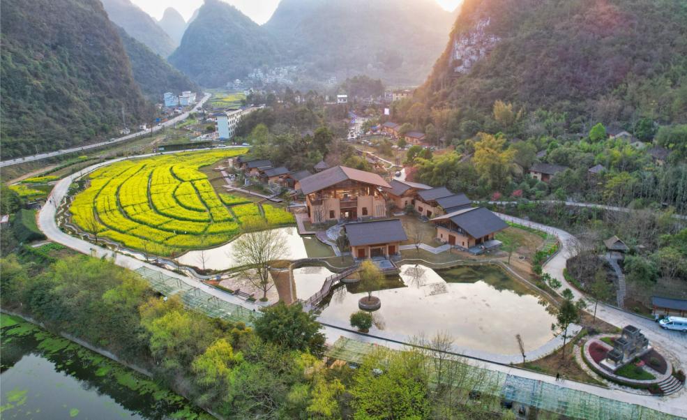 歌娅思谷是南丹白裤瑶民俗文化核心景点,占地面积约9.6平方公里,核心区568亩,整个景区处于山体与河流之间的坪坝地段,四周山体环绕,景色秀丽。瑶语中“歌”为地名,“娅思谷”为漂亮瑶妹—阿娅,歌娅思谷就是有漂亮瑶妹的地方。景区依托谷内养元聚气的天然生态环境,融合白裤瑶民俗文化,以“归元”的理念进行打造,建有归元田居度假别墅、特色泥巴房民宿、归元农庄、花田喜事农耕园等多元化服务设施,让游客身、心都回归“本元”,回到万事万物最本真的状态。住山水泥巴酒店、吃时令农家菜,看得见山,望得见水,留得住乡愁!
