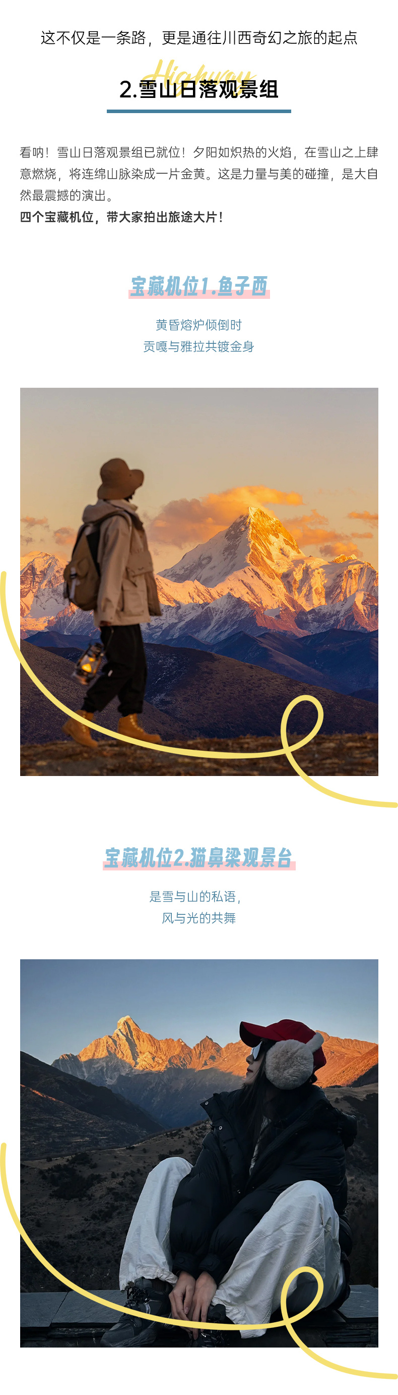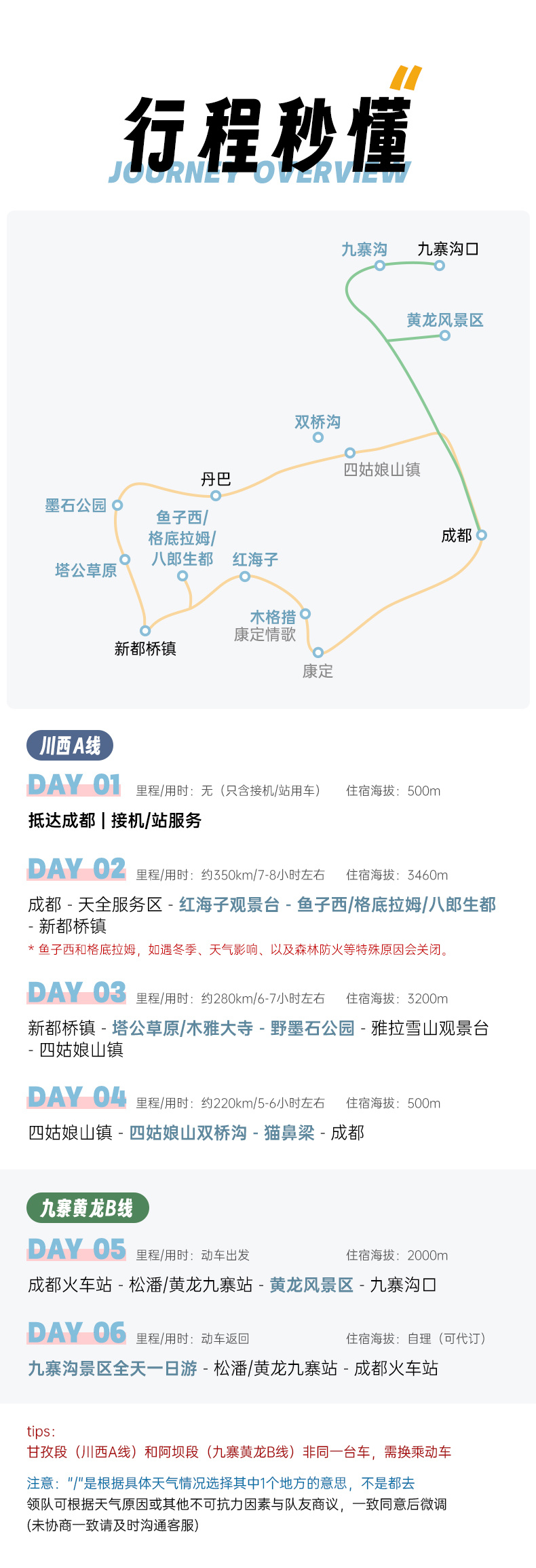 景点海拔:天全服务区(680)、红海子观景台(4100)、格底拉姆/鱼子西/八郎生都(4200)