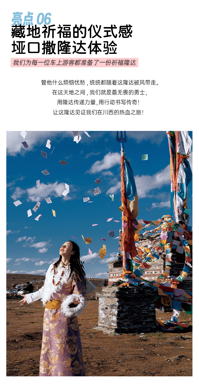 (1)到当地游玩希望您尊重原著文化、当地风俗以及他们的宗教信仰。接触另类生活人群和他们的文化时,尊重当地的文化和传统,与人平等相处才能发现一个完全不同的世界,减少旅游给当地文化和传统带来的影响,在藏地摄影时,请尊重当地的管理规定和民风民俗,对于关卡,桥梁,军事管理区,私人住宅,寺庙,法事,以及其它各种有拍摄禁忌的地方,请不要拍照,如果强行拍照,可能会造成相机被没收或者更严重的后果,由此造成的不良后果和影响,队员自负。