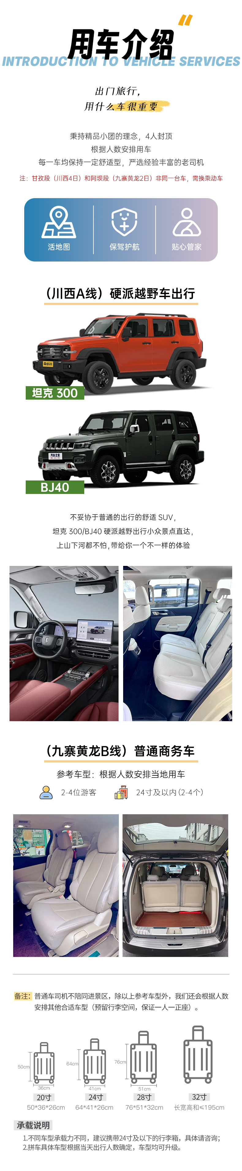 温馨提示:目前黄龙景区开通景区观光车(索道上站-五彩池站),每天限量5000张,费用为20元/人自愿购买,若有需求的游客建议提前关注公众号及时预约抢票,若未抢到票,旅行社和司机不承担任何责任,请理解!司机不陪同进入景区;