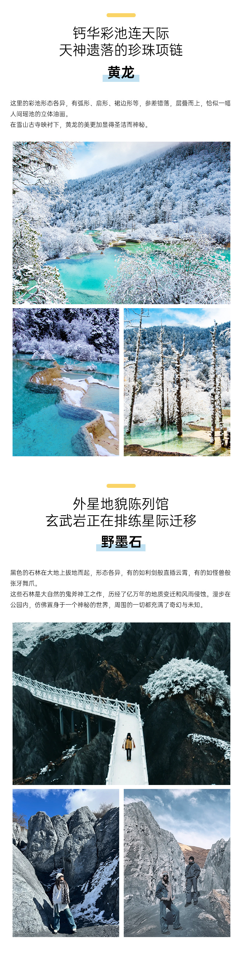 黄龙风景区;黄龙冬季索道停运,需步行上下山,请量力而行