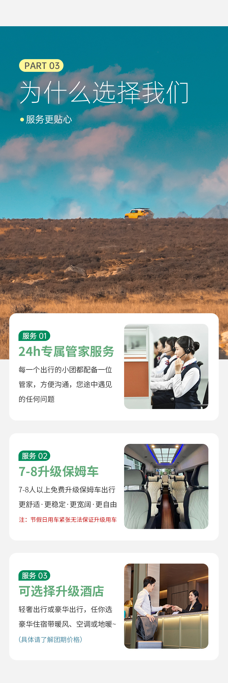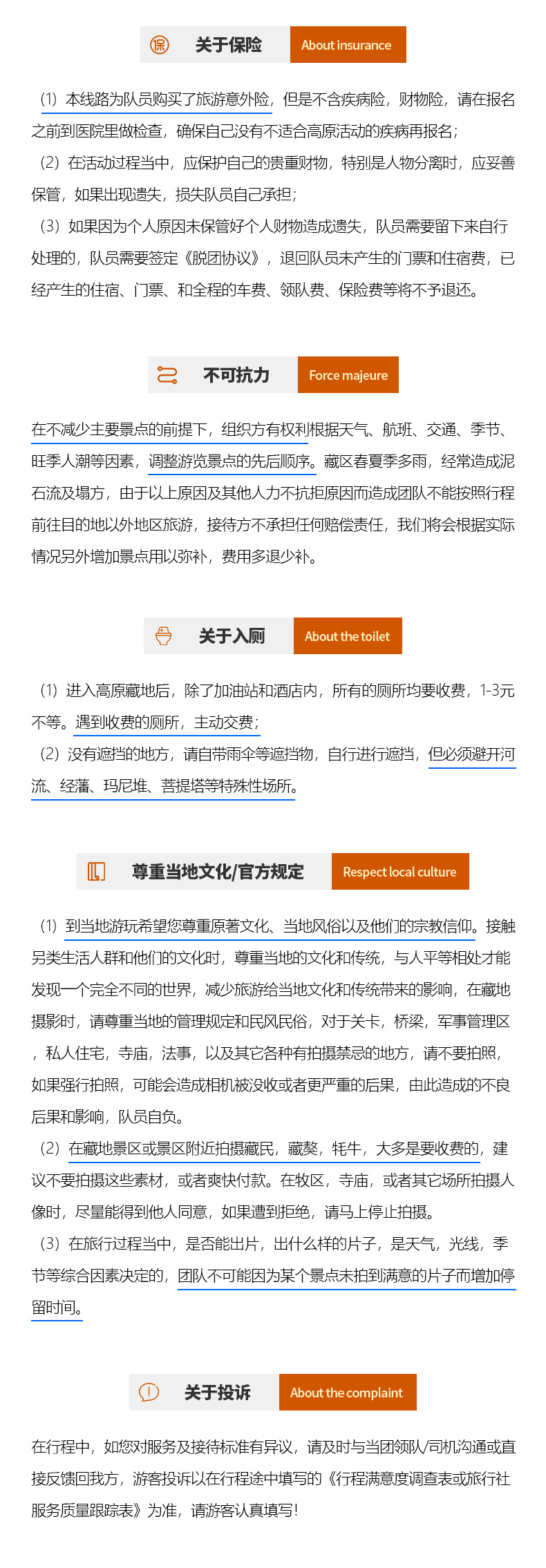 如遇以上情况,我社有权在保证出行安全的情况下调整路线或与游客协商增减景点~~还望理解。(望广大游客在出行前知晓此类情况,不接受因天气原因造成的景点路线增减导致的投诉)