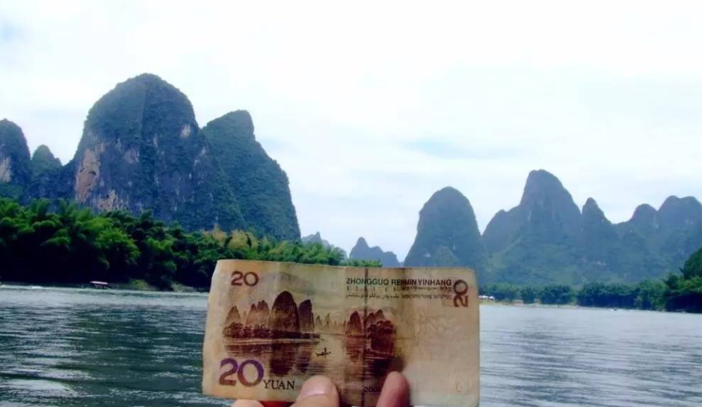 兴坪镇最著名的景点。 黄布倒影是漓江精华中的精华,也是20元人民币的背面景色,游人到此,通常会拿出一张20元的人民币与其合影,滩边岸上有当年设计20元人民币时的取景处,照相的效果与纸币水印对比,一摸一样。