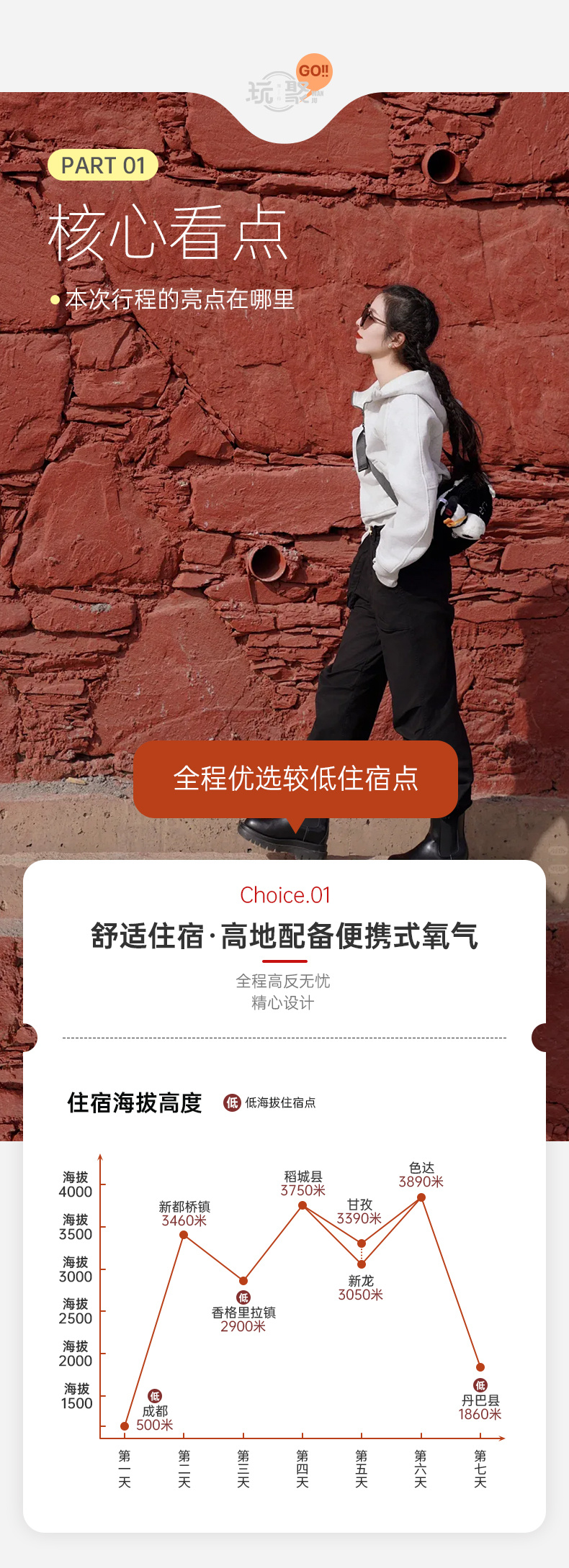 川藏线、四川、拉萨、甘青环线大部分景点海拔在3000米以上,快速进入海拔3000米以上高原时,会产生不同程度的高原反应。
