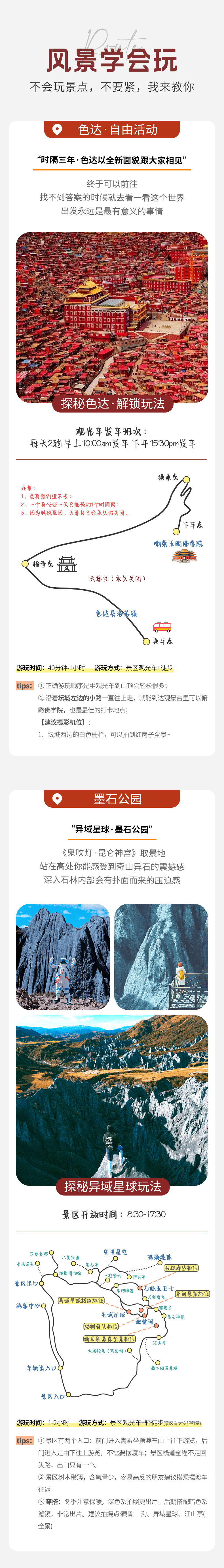 ①色达均是预约进入,统一观光车参观游览。
