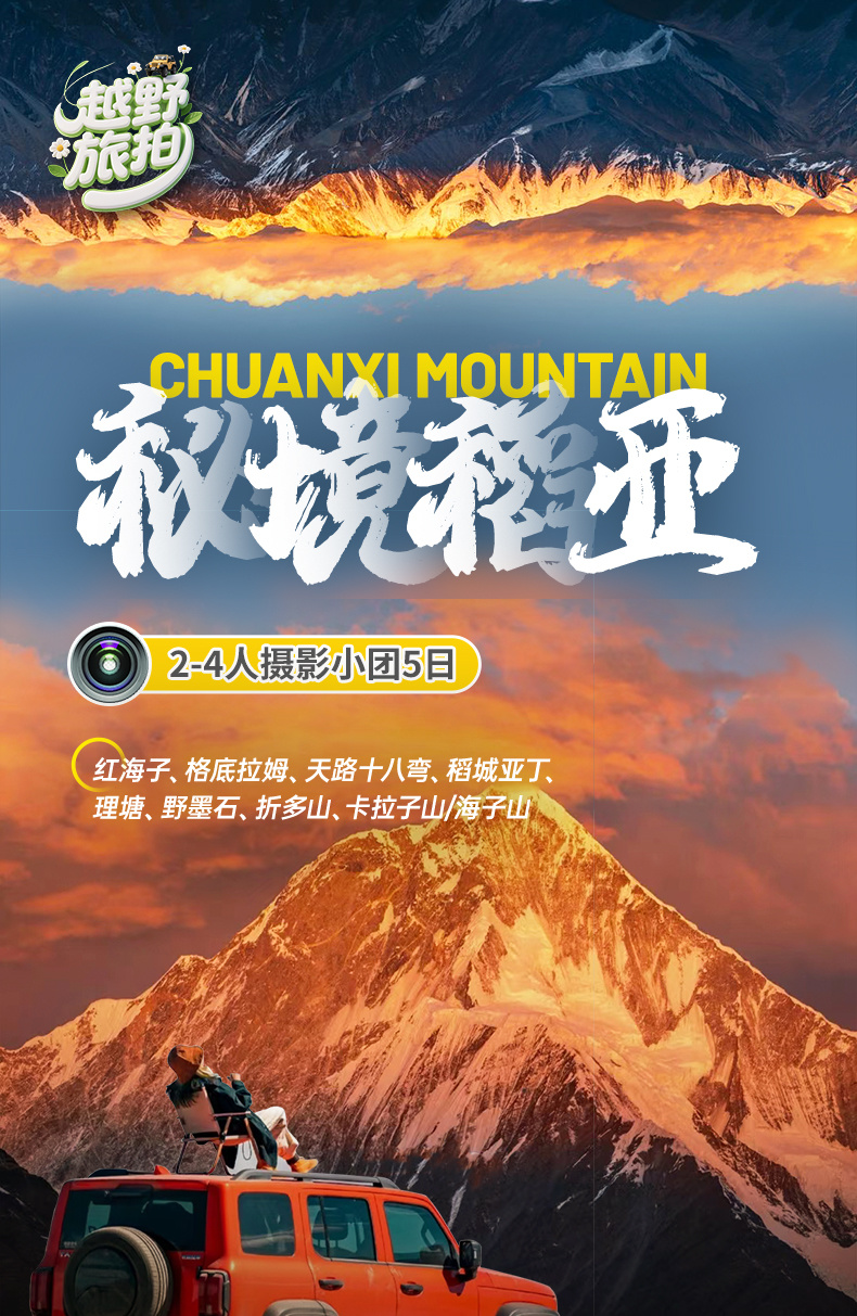 越野旅拍团【秘境稻亚】| 红海子、鱼子西/格底拉姆/八郎生都/降布神山、稻城亚丁、理塘、折多山、天路十八弯