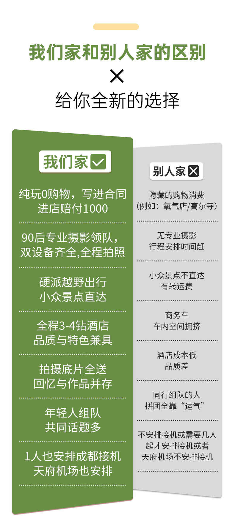 无人机+单反旅拍(底片全送+9张精修照片+1条精剪视频),底片全程不低于40张,无人机视频不低于3条(全车人拍摄旱地拔葱视频,晚上领队带大家星空拍摄);