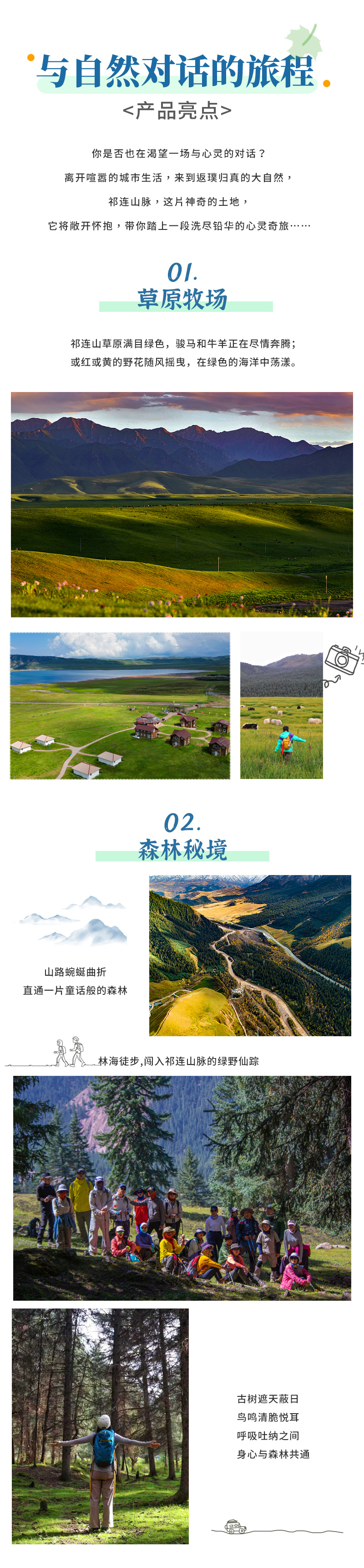 吃过早饭,开启今天的旅程。祁连山脉连绵起伏,还有广袤的草原风光,是陶冶心灵的绝佳风景区。今天,我们将带领大家徒步穿越【祁连草原】。