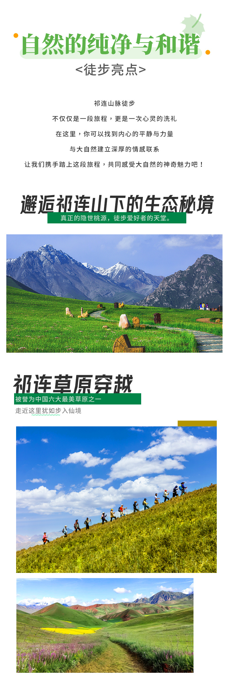 海拔:徒步最高海拔3360m,祁连县2780m。