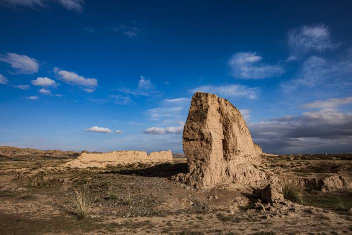 早起,我们驱车来到位于甘肃省山丹县的【汉明长城遗址】。绵延近200公里的汉明长城虽修建于不同的年代,却同样身负守护后代和平的责任。完全不同的建筑方式,却有着同样的长度和走向,汉长城在北侧,明长城在其里,两者平行延伸,犹如蜿蜒在茫茫戈壁中的巨龙,今天我们将沿着历史的痕迹,用脚步丈量昔日的金戈铁马。