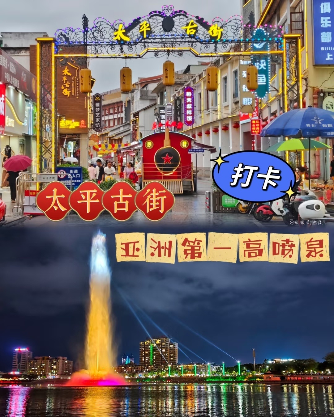 20:30 喷泉过后,还可以逛逛太平古街,感受下晚上的繁华与品尝美食小吃;