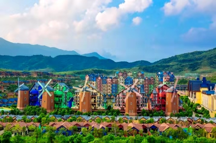 这是一座融合东西方文化的庄园,它既有中国的客家围屋和寺庙,又有德国的古堡和风车。更有两地都引以为豪的优质空气、温泉、森林覆盖和可作为饮用水的大型湖泊。