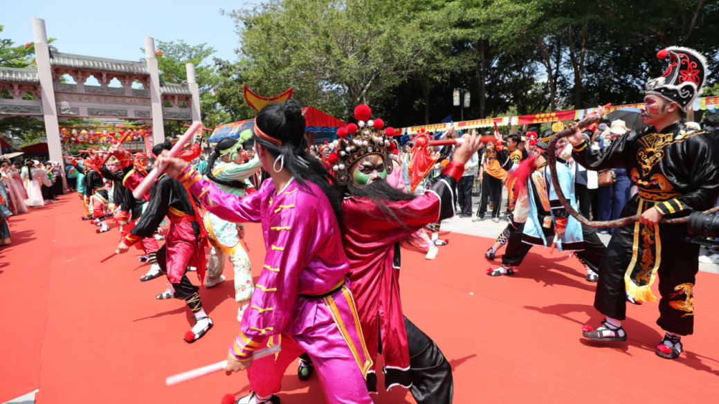 活动现场还举行了盛大的祭典仪式,舞狮、唱惠东渔歌、汉服巡游等节目轮番上演,给观众带来一场视听盛宴。