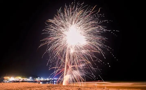 春节期间海边沙滩的烟花不间断