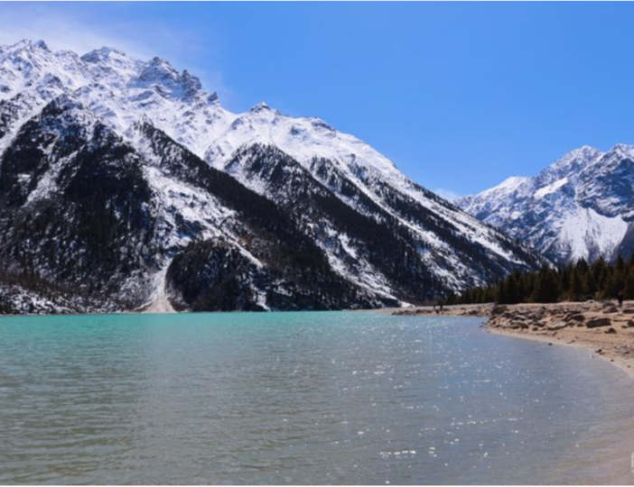 沿着察隅河逆流而上,翻越【德姆拉垭口】(海拔4900米),下山后便来到一片高山牧场,草甸尽头是一大片银装素裹的冰川。驱车行进,前往帕隆藏布江的源头【来古冰川】参观,来古冰川是世界三大冰川之一,万年蓝冰块,晶莹剔透的蓝色冰川,壮观的冰河时代。随后前往【然乌湖】(海拔3850M)游玩,如天气好可看到然乌湖虎斑霞绮的日落景观,晚上入住波密县酒店。