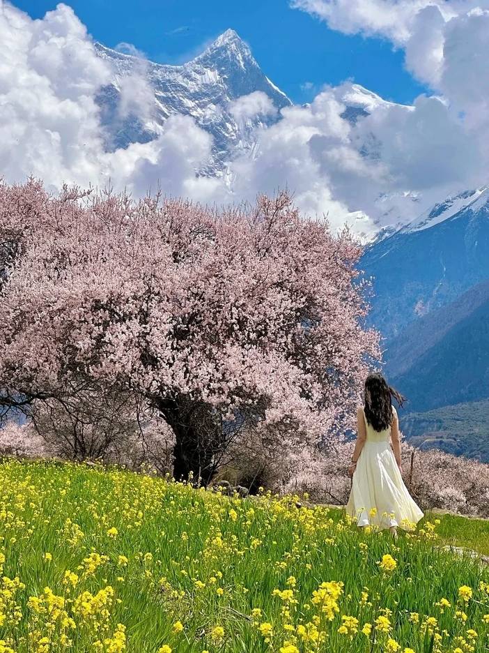 随时前往林芝【嘎拉桃花村】,林芝的【嘎拉村】漫山遍野的桃花开始铺满山坡,绵延至河谷。大株的桃花树如同桃花仙子,簇立在尼洋河畔,雪山之下,与云朵相拥,美到令人窒息。