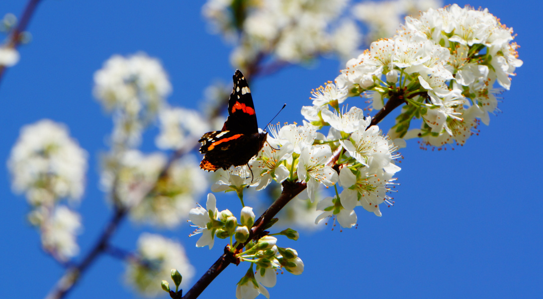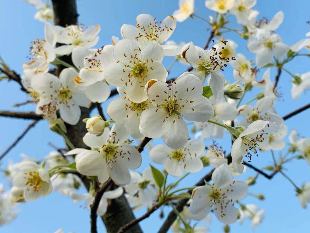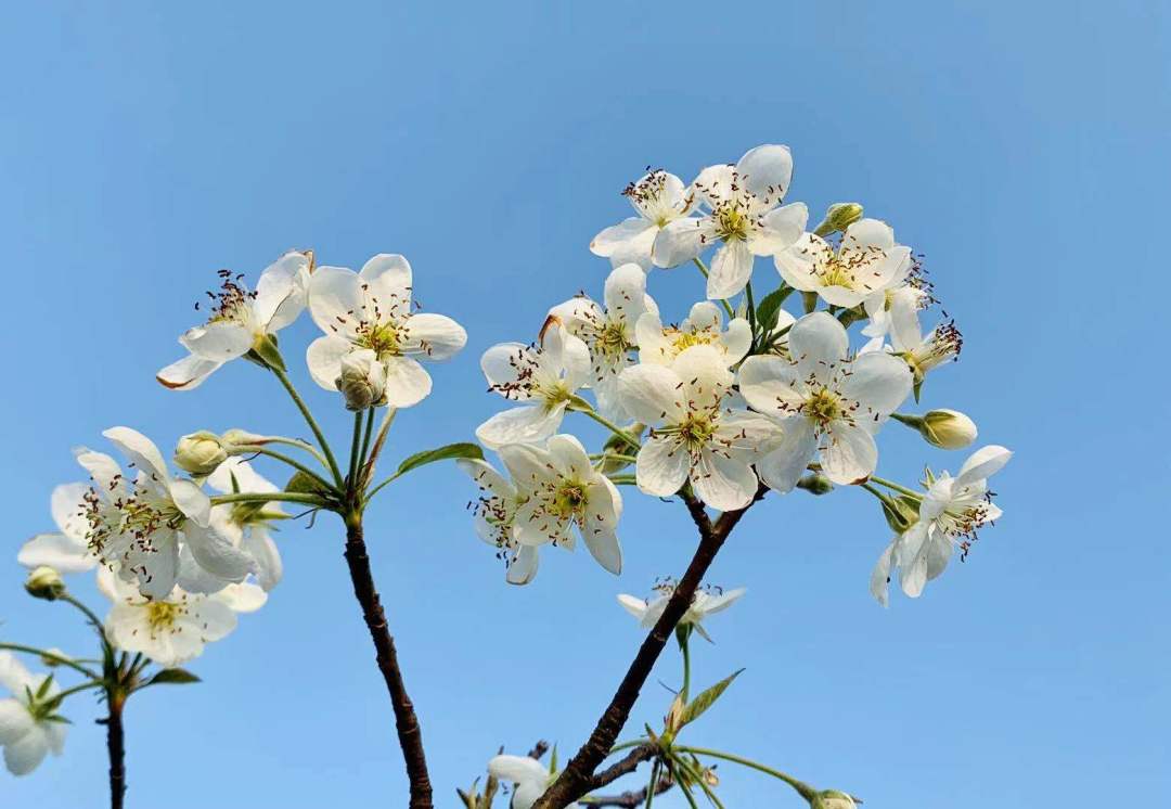 2月正是山楂花赏花的好时节,近千株雪白的山楂花漫山遍野绽放,引起蝴蝶围着花朵翻飞,小巧的花瓣在阳光映照下晶莹透亮。