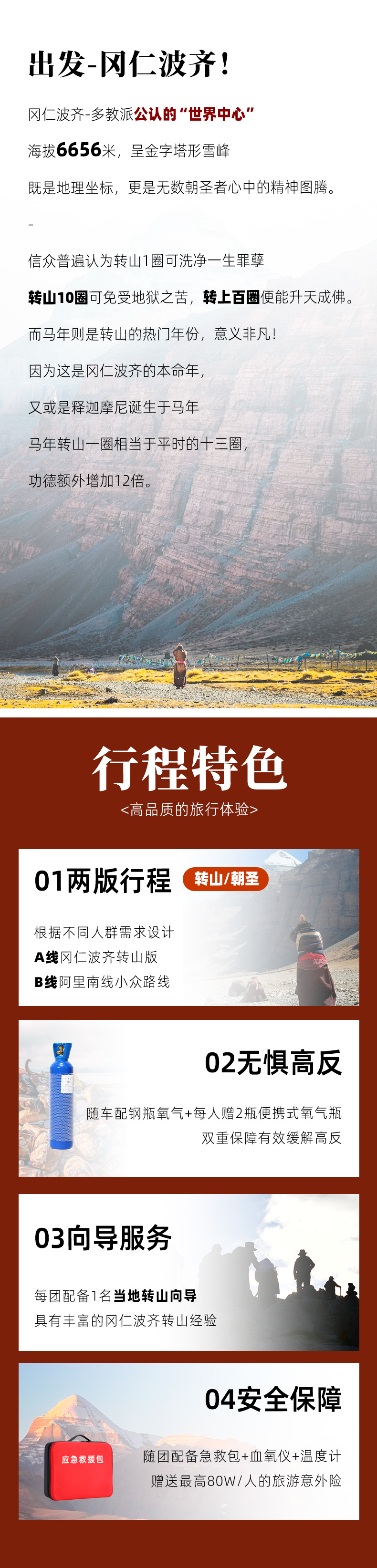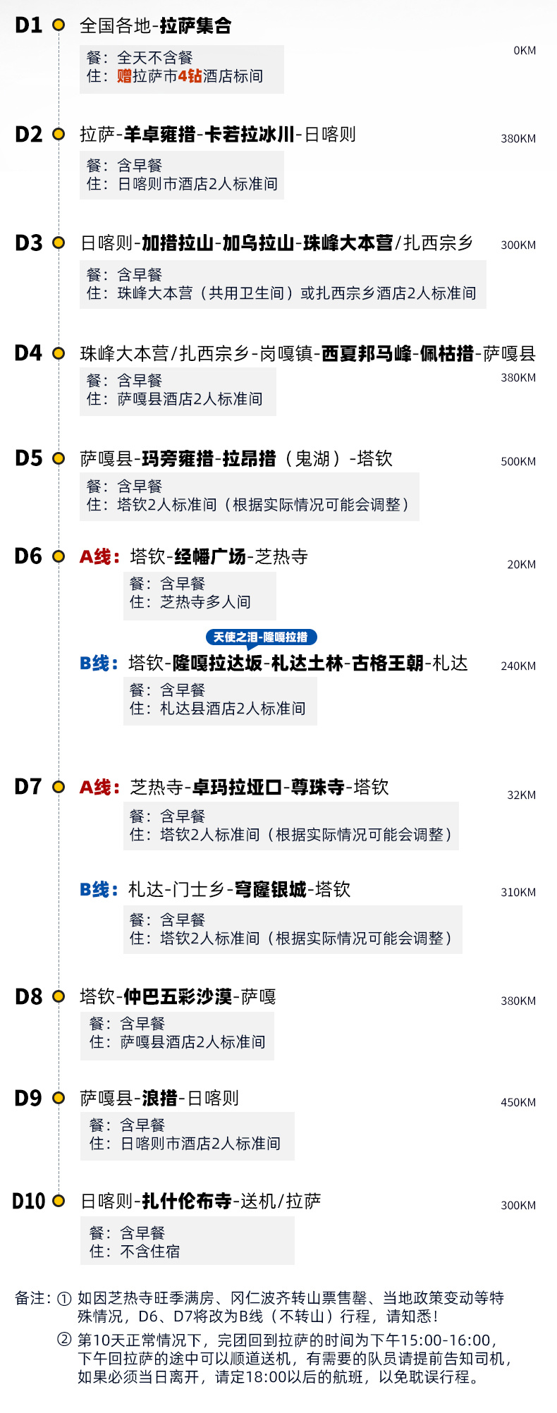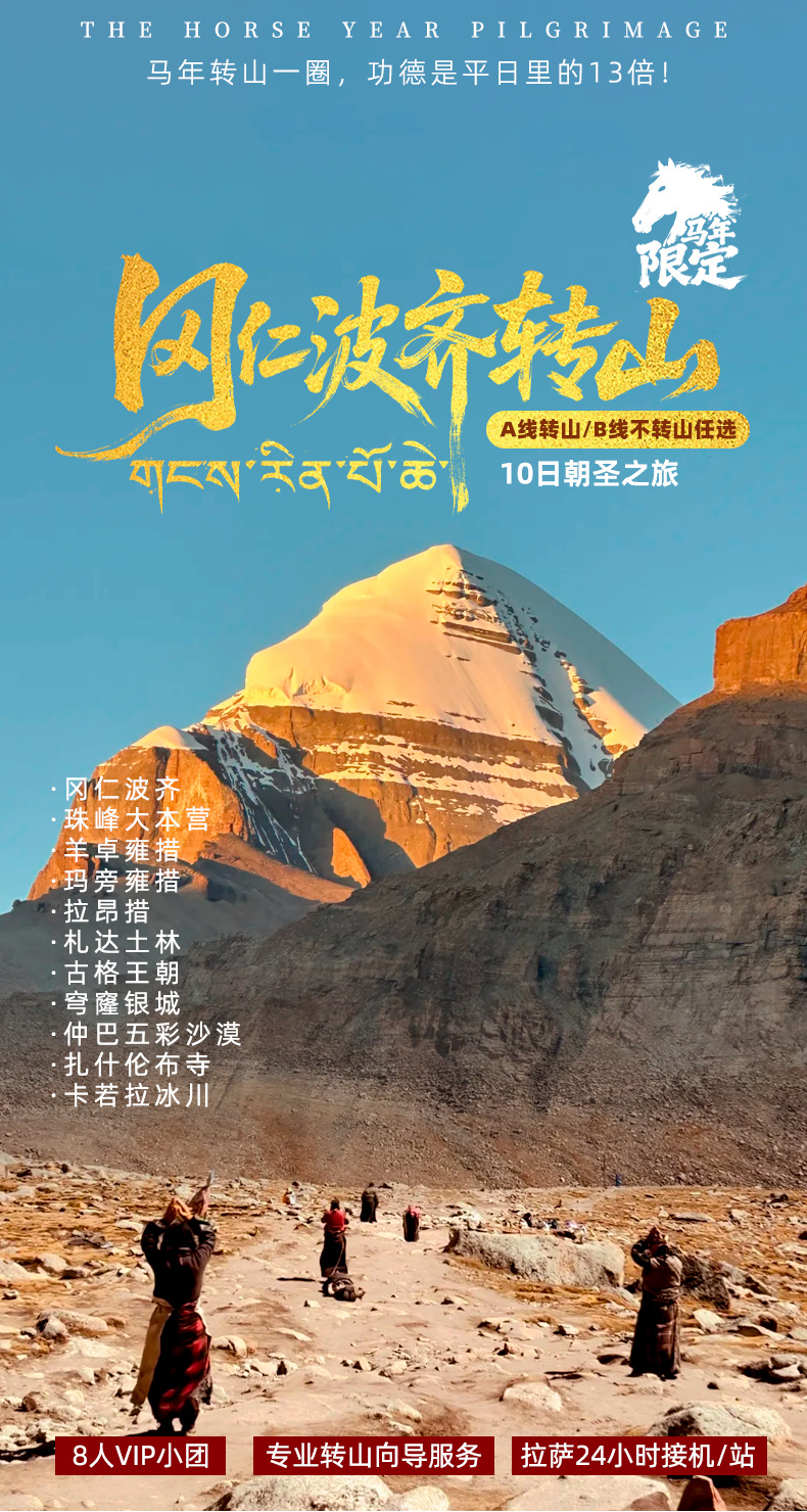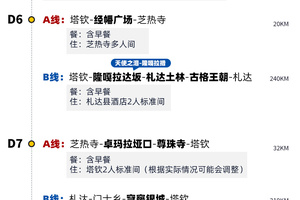 (3)如因芝热寺旺季满房、冈仁波齐转山票售罄、当地政策变动等特殊情况,D6、D7将改为B线(不转山)行程,请知悉!