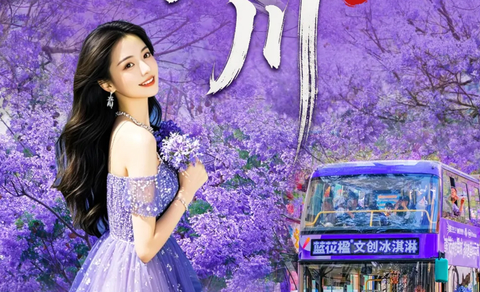 蓝花楹(双层蓝花楹观光巴士+文创雪糕)—昆明