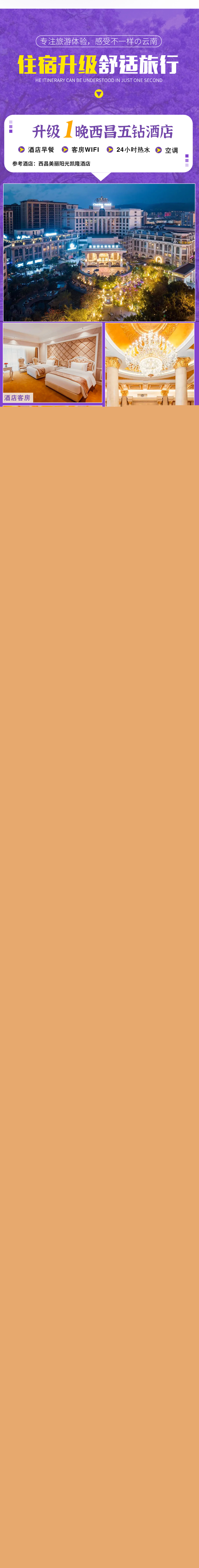 【住宿升级】:一晚五钻酒店(西昌)+4晚四钻+1晚泸沽湖湖景房领衔的舒适住宿标准