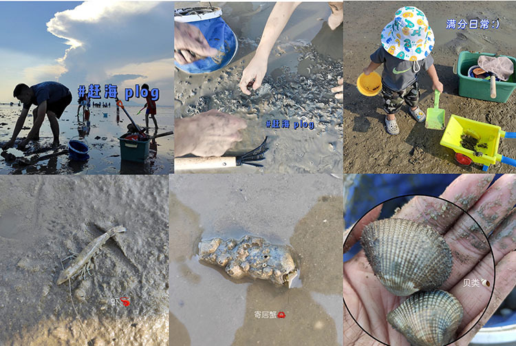 挖沙虫、抓螃蟹、摸虾……