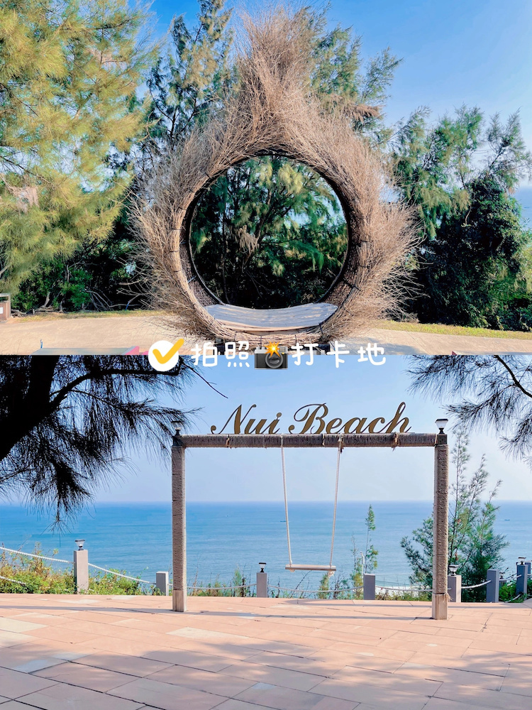 悬崖观海,眺望远方蓝蓝的大海,俯视山脚下的银白色沙滩,简直心旷神怡